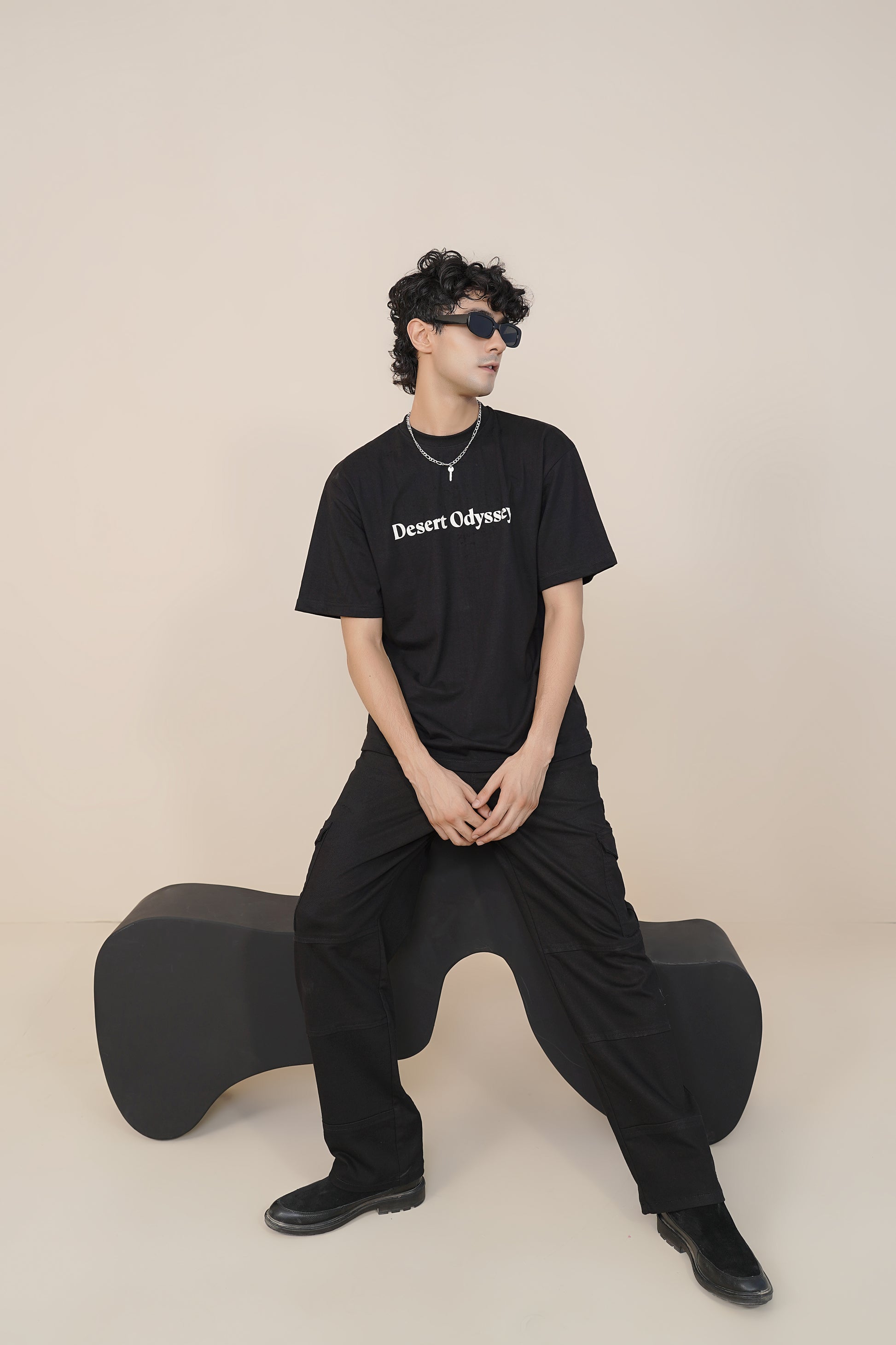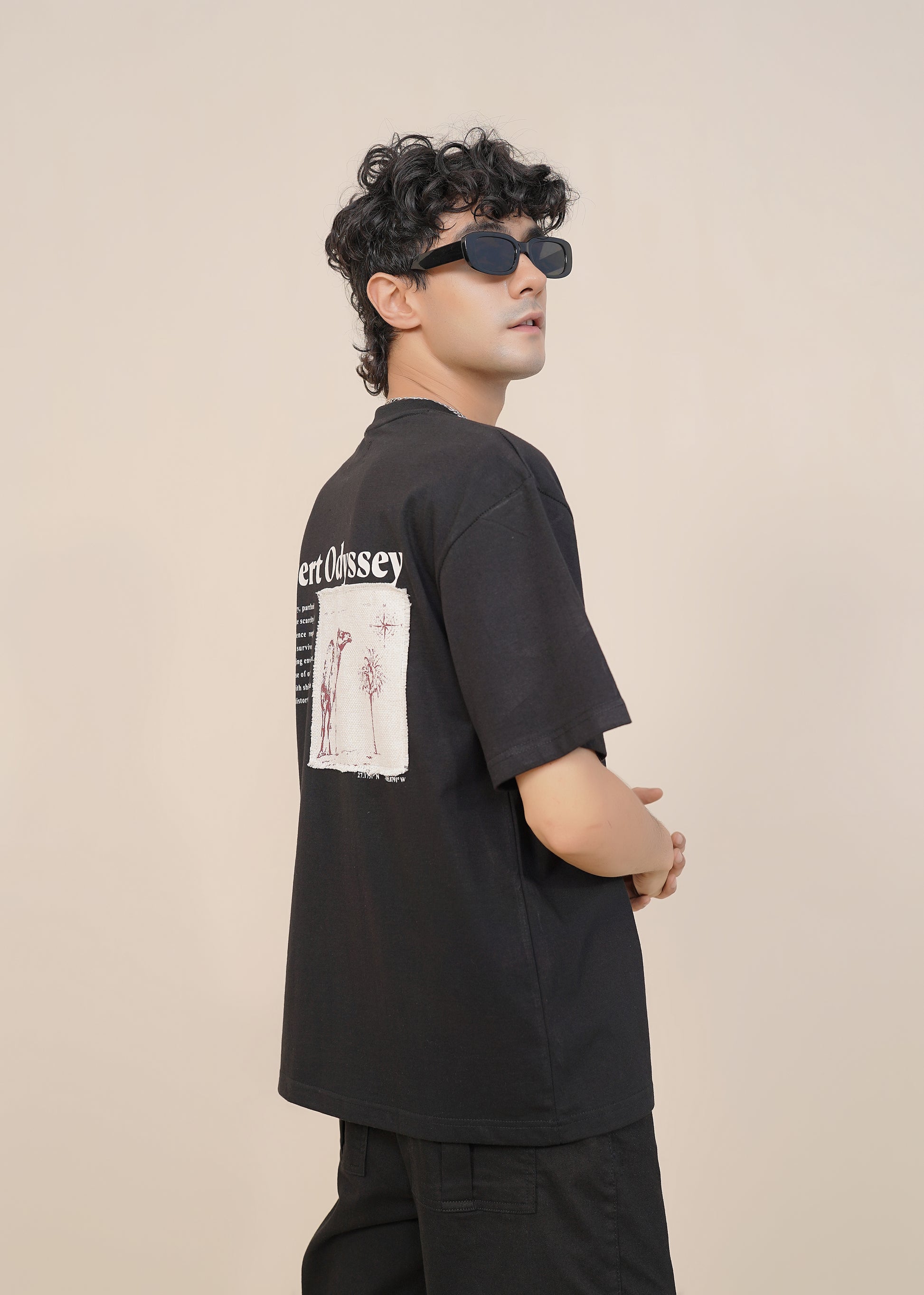 Embrace the spirit of the desert with our "Desert Odyssey" t-shirt. Made from 100% high-quality cotton with a substantial 240 GSM weight, this black t-shirt offers a comfortable yet durable wear. The back design features a striking print of a camel and palm tree on a patch, alongside the text "Desert Odyssey," evoking the resilience and mystery of desert life. Perfect for those who appreciate both style and substance, this t-shirt is ideal for casual outings and adventures alike.
